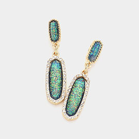 Snake Skin Patterned Metal Oval Dangle Earrings