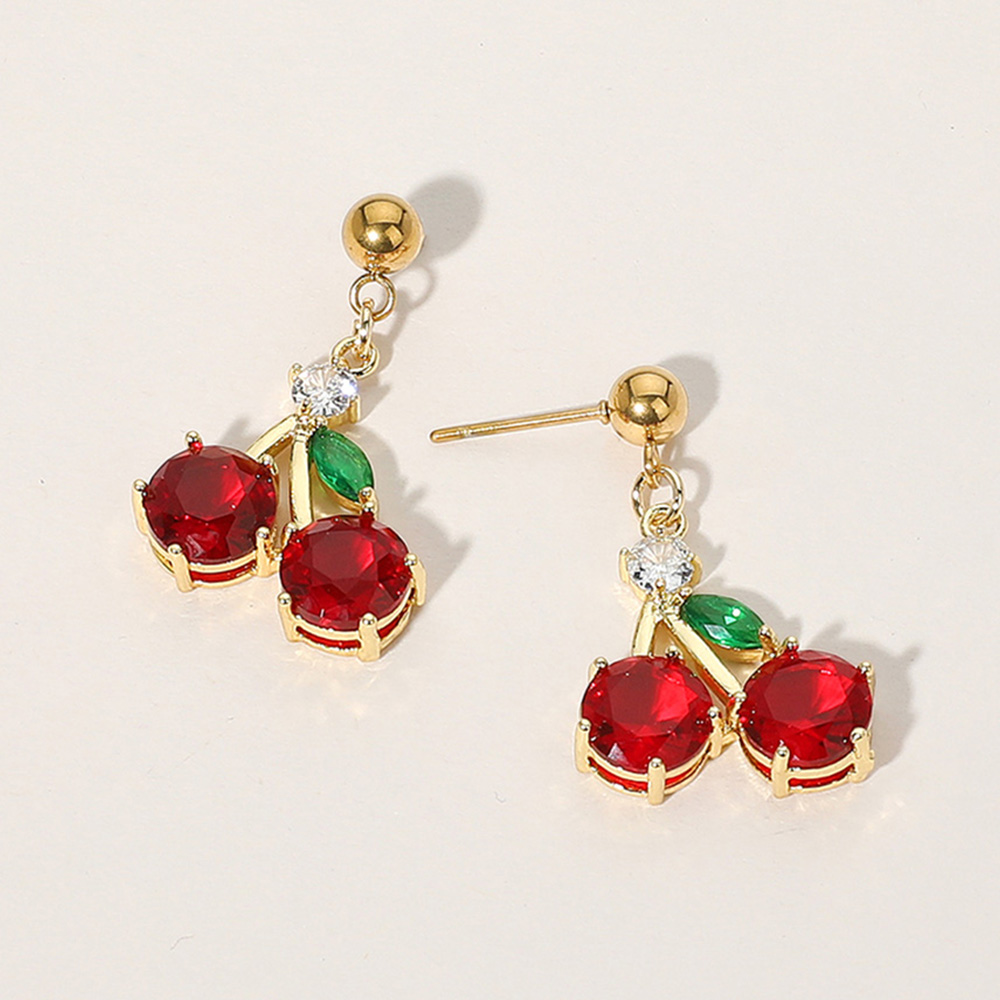 Stainless Steel Cherry Stone Cluster Dangle Earrings