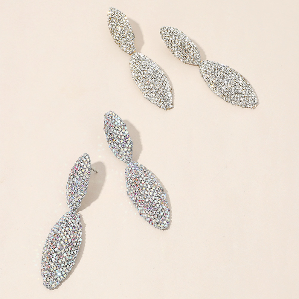 Sterling Silver Post Rhinestone Paved Marquise Dangle Earrings