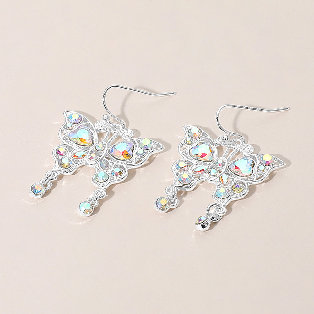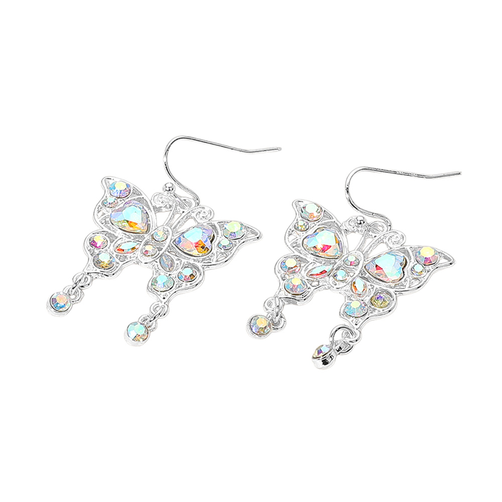 Details • Size : 1.1" X 1.7" • Fish Hook Back • Showcase your whimsical side with these butterfly dangle earrings, adorned with dazzling stones and elegant detailing. A charming accessory for both casual and special occasions, offering a playful yet graceful touch to any outfit. • Lead and Nickel Compliant