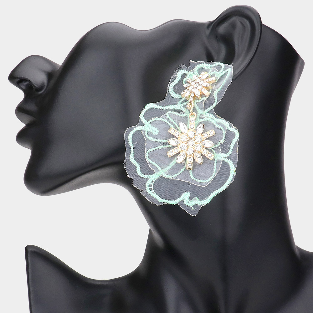 Pearl Embellished Teardrop Stone Accented Flower Stretch Ring