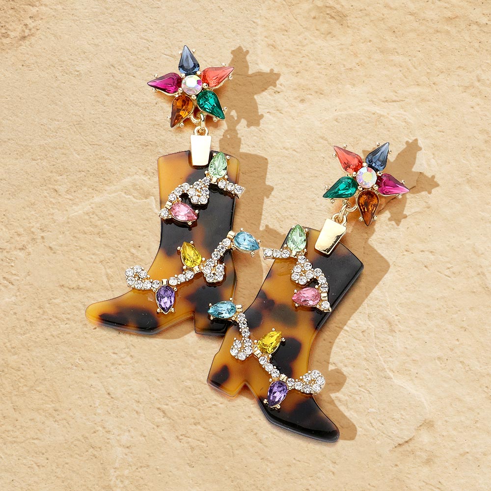 Stone Embellished Resin Cowboy Boot Dangle Earrings