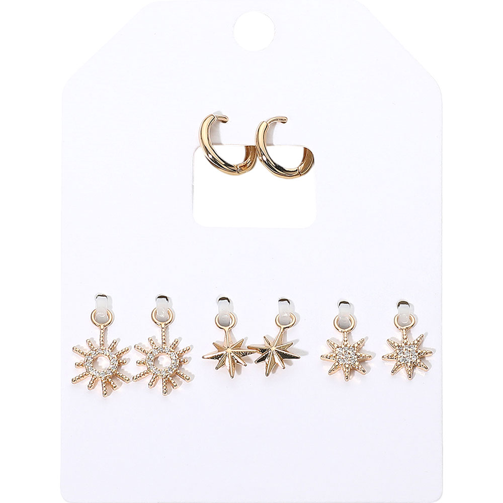 Details • Size : 0.7" L, 0.5" L • Huggie Back • Versatile earring set with sleek hoops and detachable star-themed charms in radiant designs. Mix and match these cosmic-inspired pieces to express your unique style with a touch of elegance. • Lead and Nickel Compliant