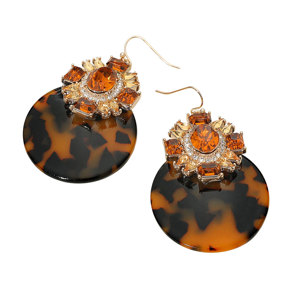 Details • Size : 1.6" X 2.5' • Fish Hook Back • These vintage-inspired drop earrings feature radiant gem embellishments set atop glossy round discs, blending old-world glamour with modern flair. Perfect for special occasions or statement looks, they bring a touch of elegance and sophistication to any ensemble. • Lead and Nickel Compliant