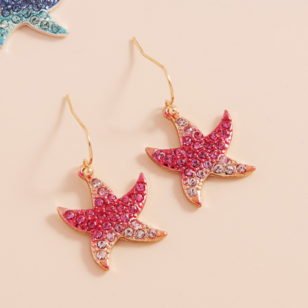 Stone Paved Colored Metal Starfish Dangle Earrings