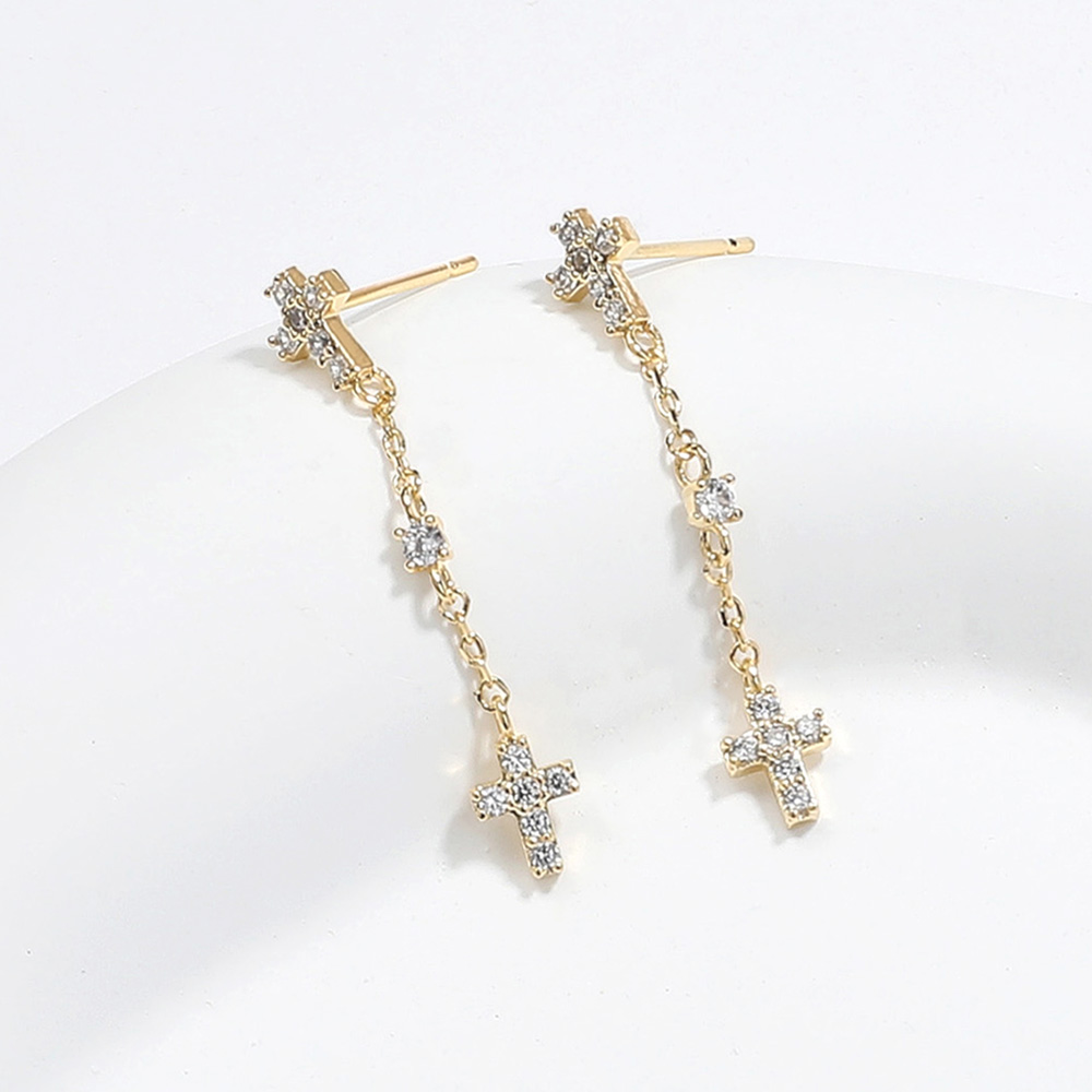 • These dangling earrings feature delicate cross pendants accented with sparkling crystals for an elegant, refined look. Lightweight and versatile, they add a graceful touch to both casual and formal outfits, making them a beautiful choice for everyday wear or special occasions.