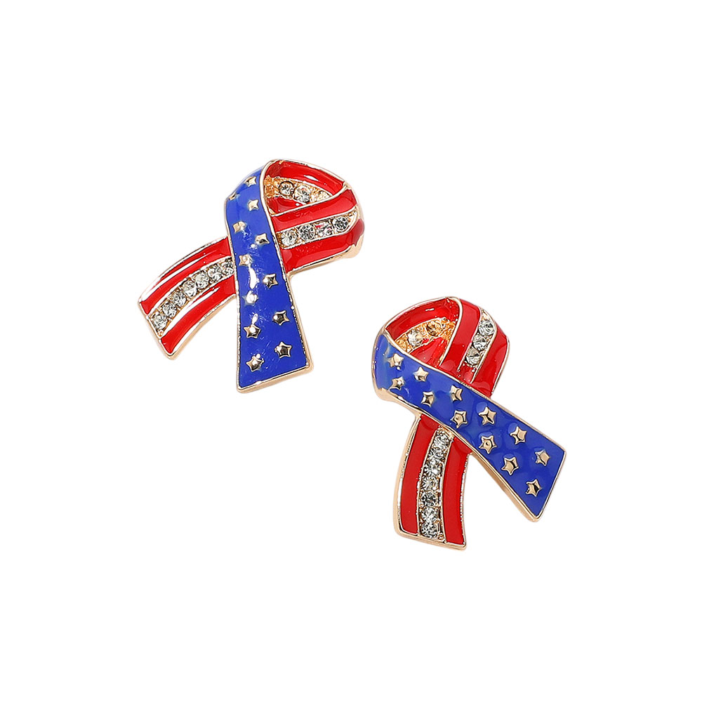 • Patriotic ribbon stud earrings with sparkling detail, ideal for national celebrations, themed events, or showcasing American pride in style. Lightweight and festive.