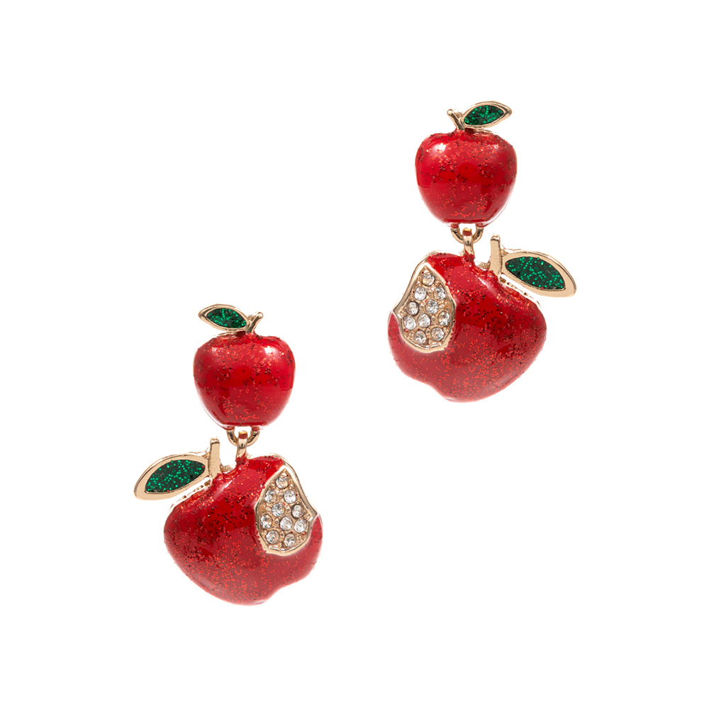 Stone Paved Glittered Enamel Apple Dangle Earrings