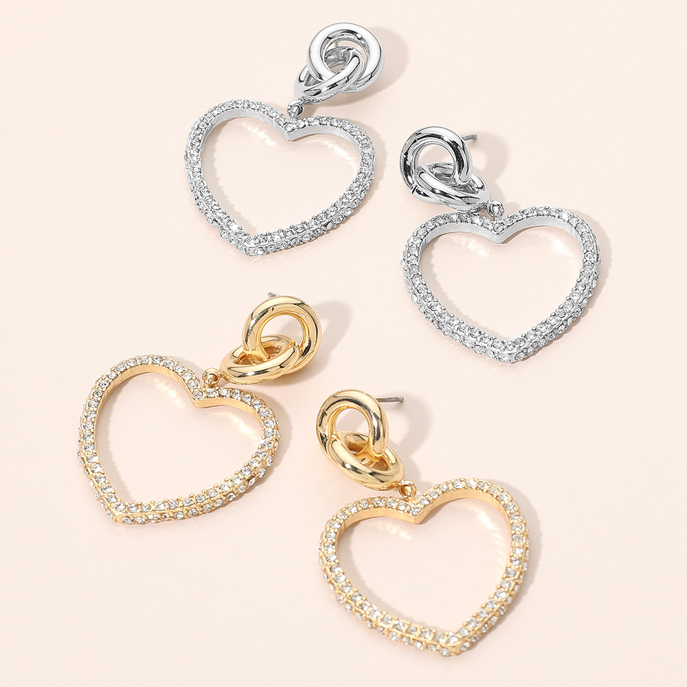 Stone Paved Open Heart Drop Dangle Earrings Stone Paved Open Heart Drop Dangle Earrings Stone Paved Open Heart Drop Dangle Earrings