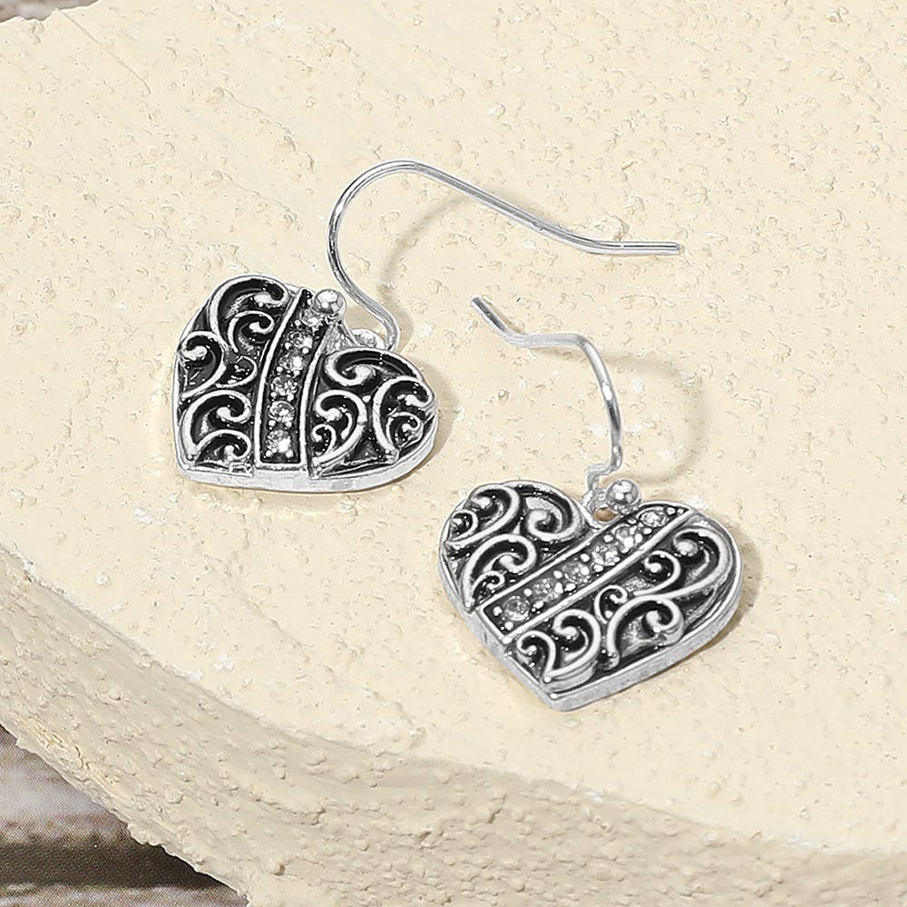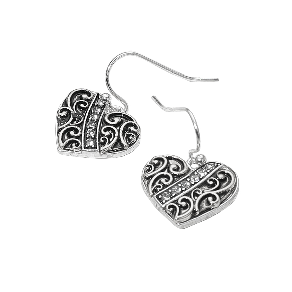 Details • Size : 0.7" X 1" • Fish Hook Back • Show off timeless style with these vintage heart drop earrings featuring intricate filigree details and sparkling accents. Lightweight and elegant, they are perfect for everyday wear or special occasions, adding a romantic and classic charm to your jewelry collection. • Lead and Nickel Compliant