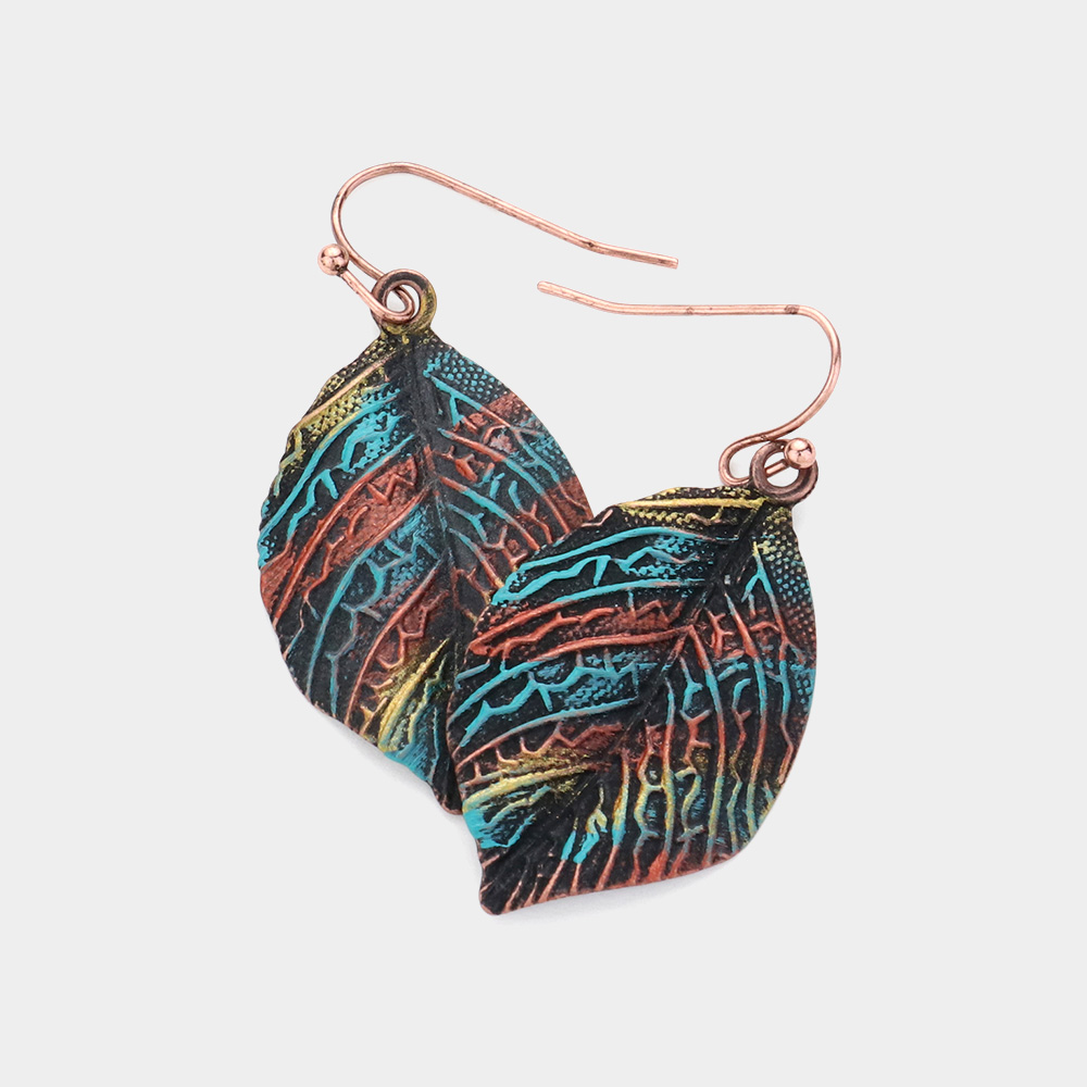 Metal Filigree Double Leaves Drop Dangle Earrings