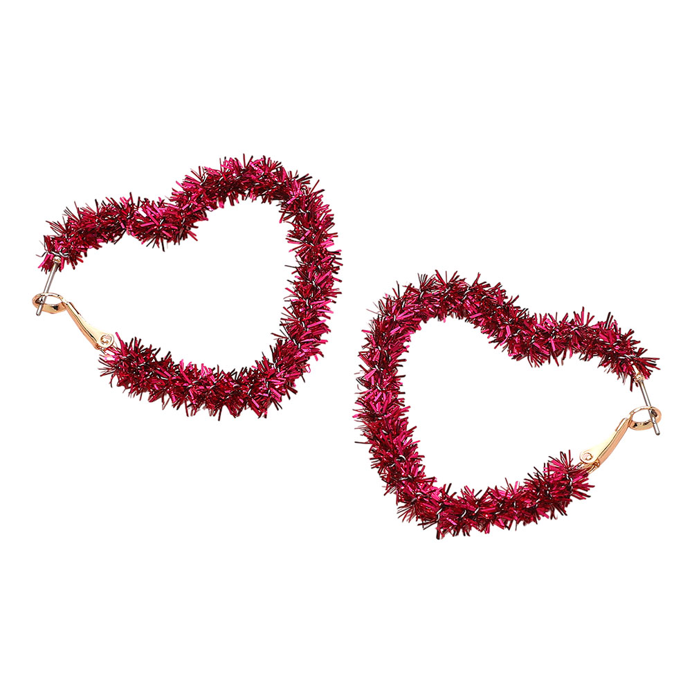 • Make a bold and playful statement with these heart-shaped hoop earrings featuring a festive tinsel texture. Lightweight and full of charm, they add sparkle and fun to any outfit. Perfect for parties, themed events, or when you want to showcase your vibrant, confident style.