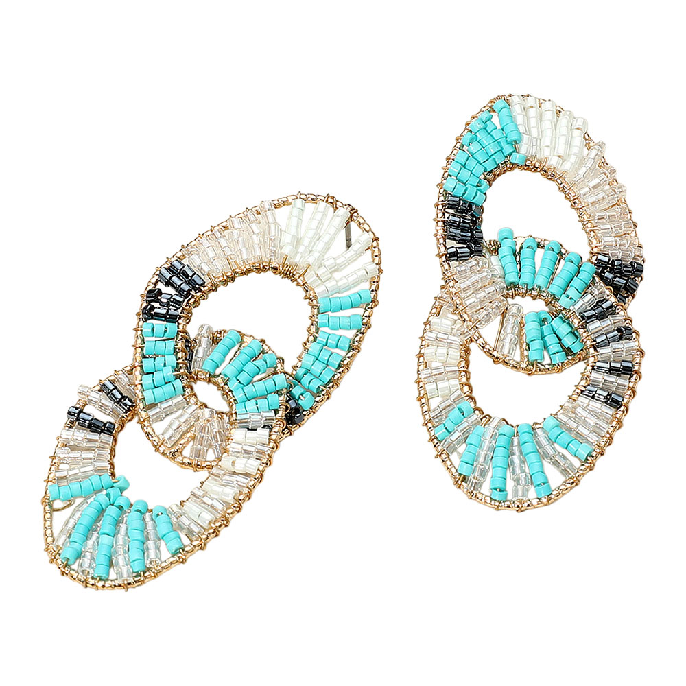 Details • Size : 1" X 2.2" • Post Back • Stand out with multi-link beaded statement earrings featuring intricate seed bead patterns and bold interlocking shapes. Lightweight yet eye-catching, these earrings bring vibrant style and artistic flair, perfect for festivals, parties, or elevating everyday outfits. • Lead and Nickel Compliant