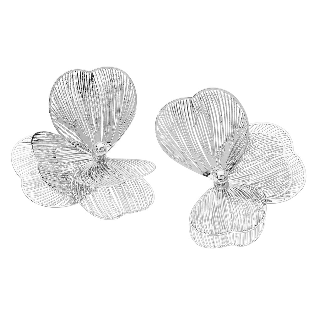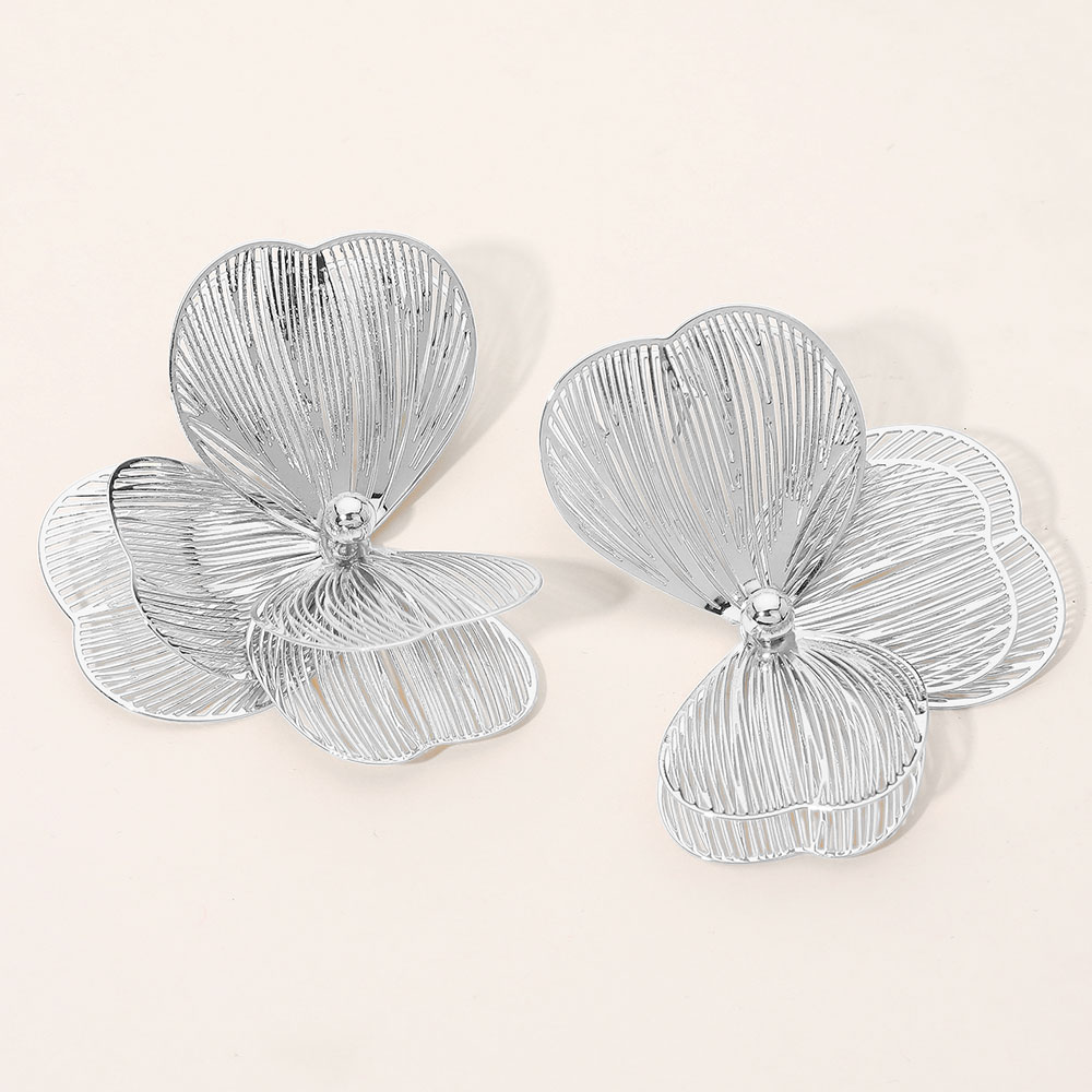 Details • Size : 2.1" X 2.5" • Post Back • Add a touch of sculptural elegance with these Modern Triple Petal Earrings. Featuring a layered petal design with a radiant finish, these earrings offer a bold yet refined statement. Perfect for formal or evening wear, they blend modern artistry with timeless sophistication. • Lead and Nickel Compliant