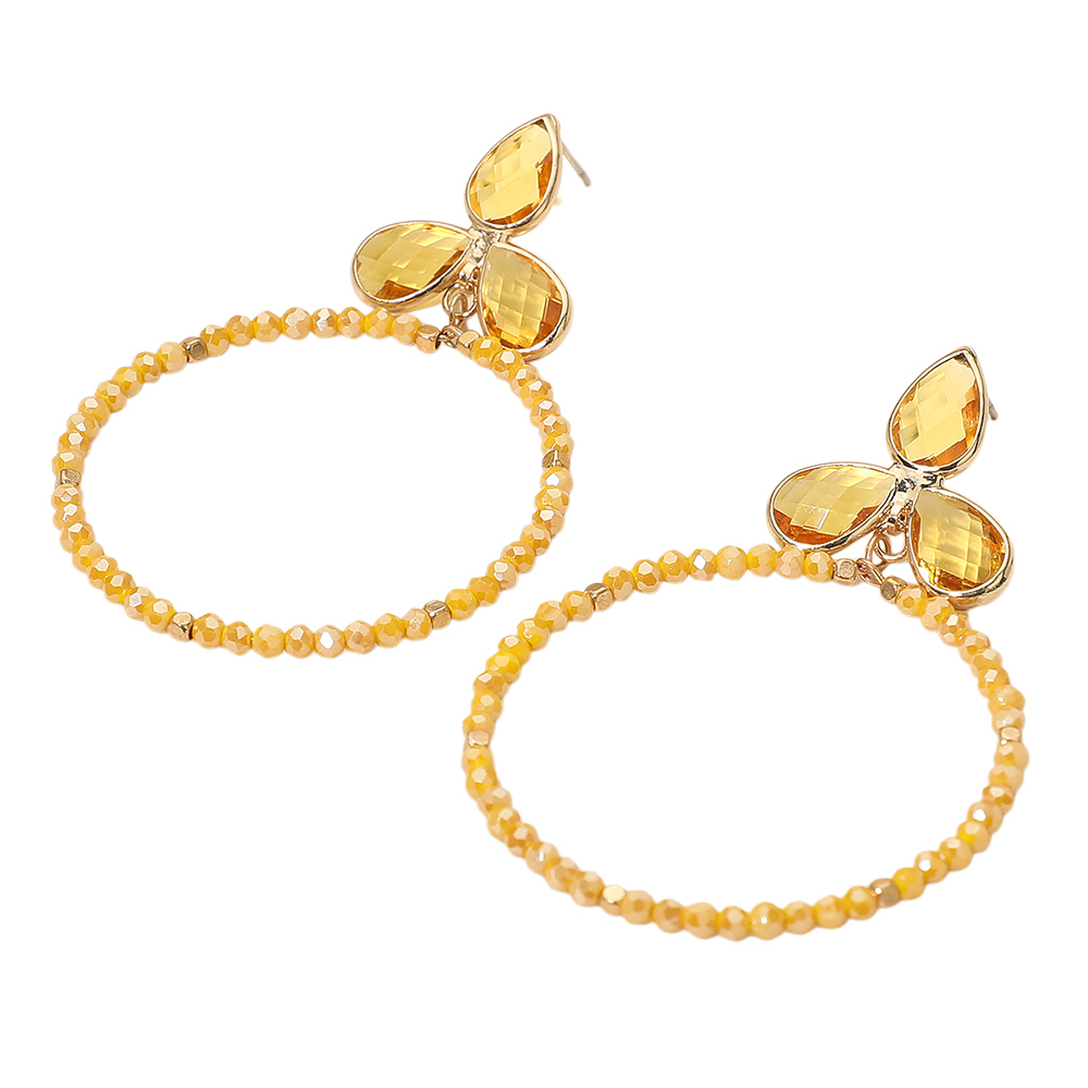 Details • Size : 1.75" X 2.75" • Post Back • Make a bold statement with these beaded hoop earrings featuring dazzling gemstone accents. Lightweight and vibrant, they add playful charm and elegance to any outfit, perfect for festivals, parties, or casual wear with a stylish edge. • Lead and Nickel Compliant