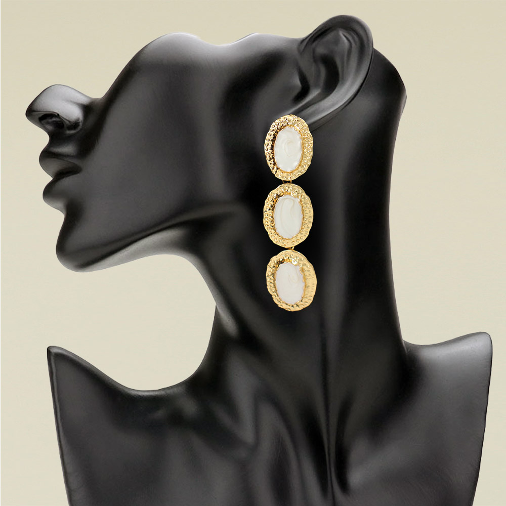 • Stylish triple oval drop earrings featuring marbled oval centers framed by textured metallic borders. The cascading design adds a touch of modern elegance, perfect for dressing up any outfit. Lightweight yet striking, ideal for parties, special events, or chic everyday wear.