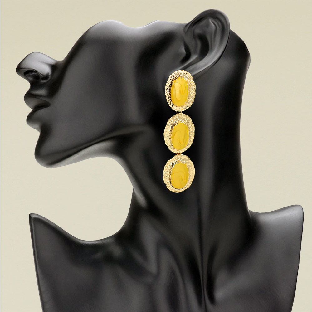 Triple Textured Frame Enamel Oval Plate Drop Earrings Triple Textured Frame Enamel Oval Plate Drop Earrings