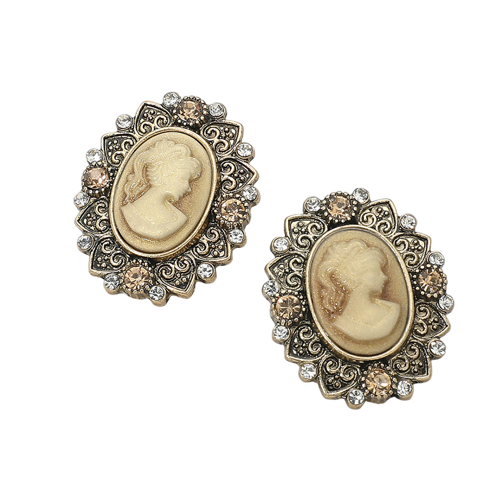 Crystal Accent Vintage Cameo Drop Dangle Earrings