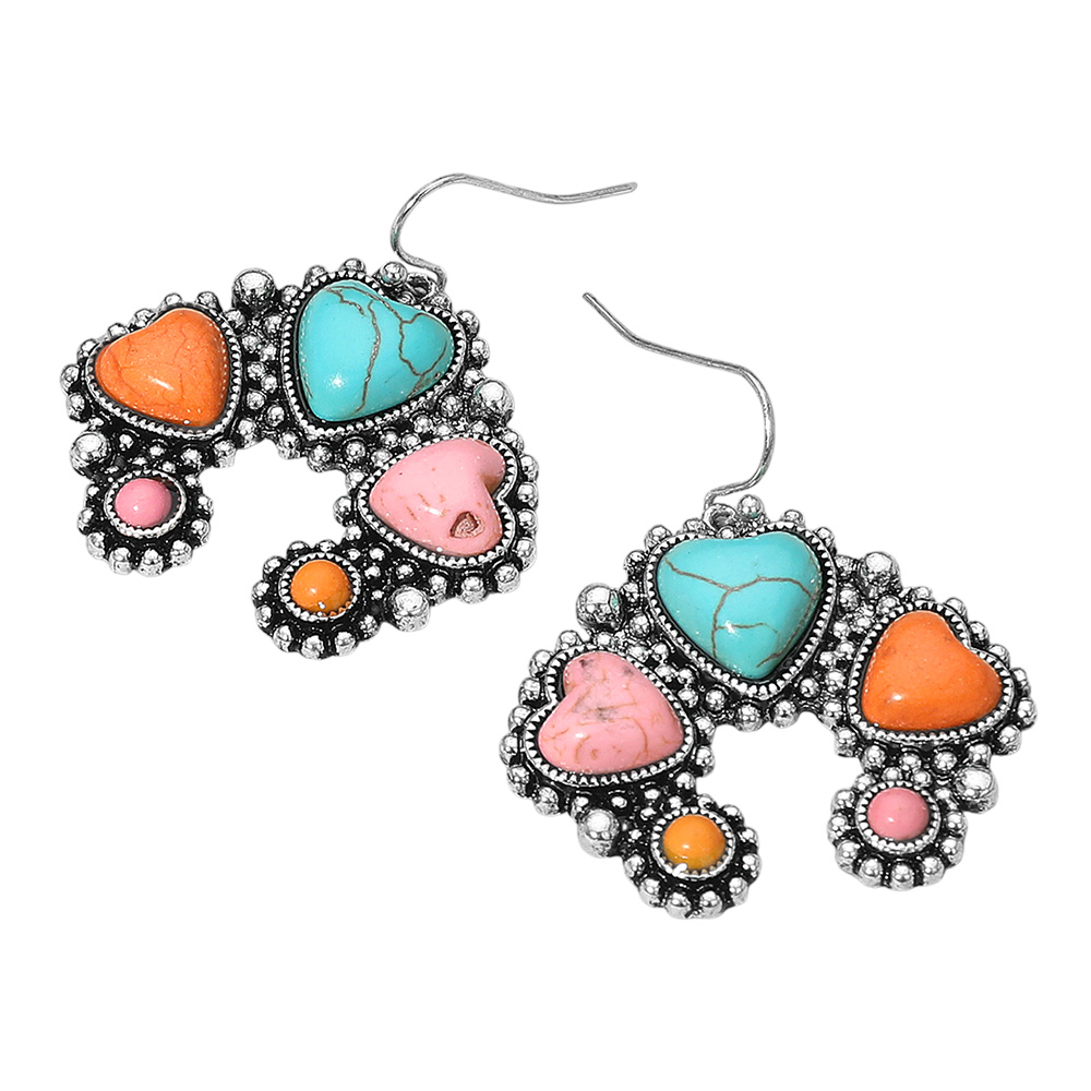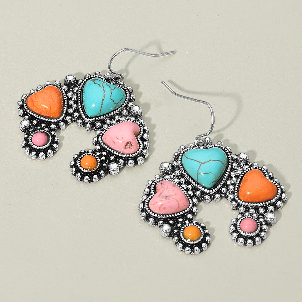 • Add artistic flair to your look with these boho heart gemstone drop earrings. Featuring a mix of vibrant stones in a vintage-inspired setting, they bring color, charm, and personality to any outfit—perfect for free-spirited styles and statement accessorizing.