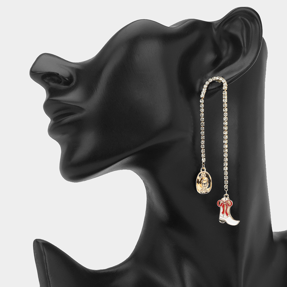 Western Chic Crystal Chain Cowboy Boot Hat Drop Earrings Western Chic Crystal Chain Cowboy Boot Hat Drop Earrings Western Chic Crystal Chain Cowboy Boot Hat Drop Earrings