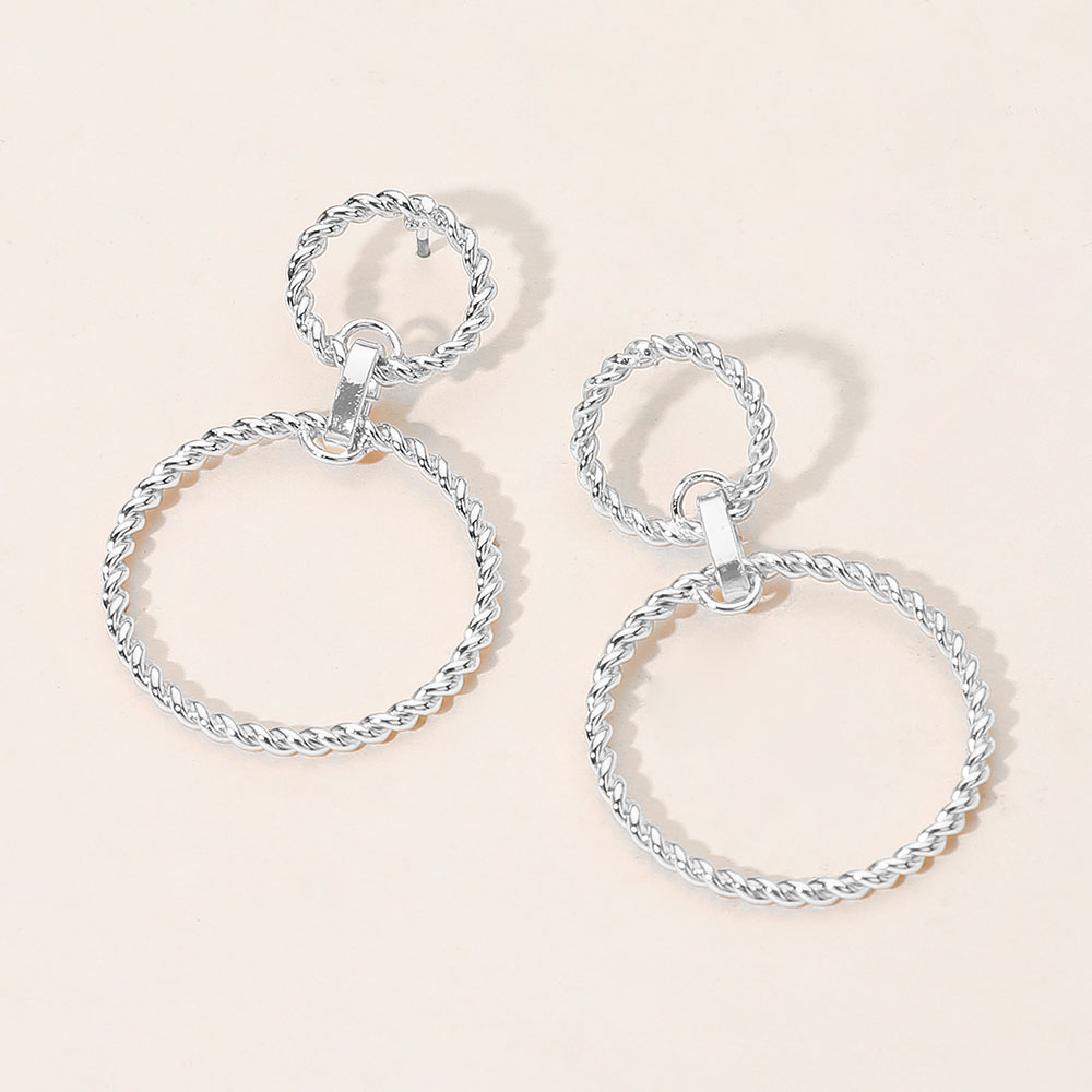 Details • Size : 1" X 1.6" • Post Back • These elegant double hoop earrings feature a twisted rope-inspired design, creating a chic and modern statement look. Perfect for both casual and formal occasions, they add a touch of sophistication and movement, making them an effortless accessory for any style ensemble. • Lead and Nickel Compliant