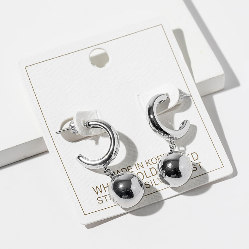 • Sleek hoop earrings with a smooth round drop accent that adds subtle movement and modern style. Designed for everyday wear or special occasions, this versatile silhouette complements minimalist, casual, and dressy looks, making it an easy-to-merchandise choice for trend-focused accessory collections.