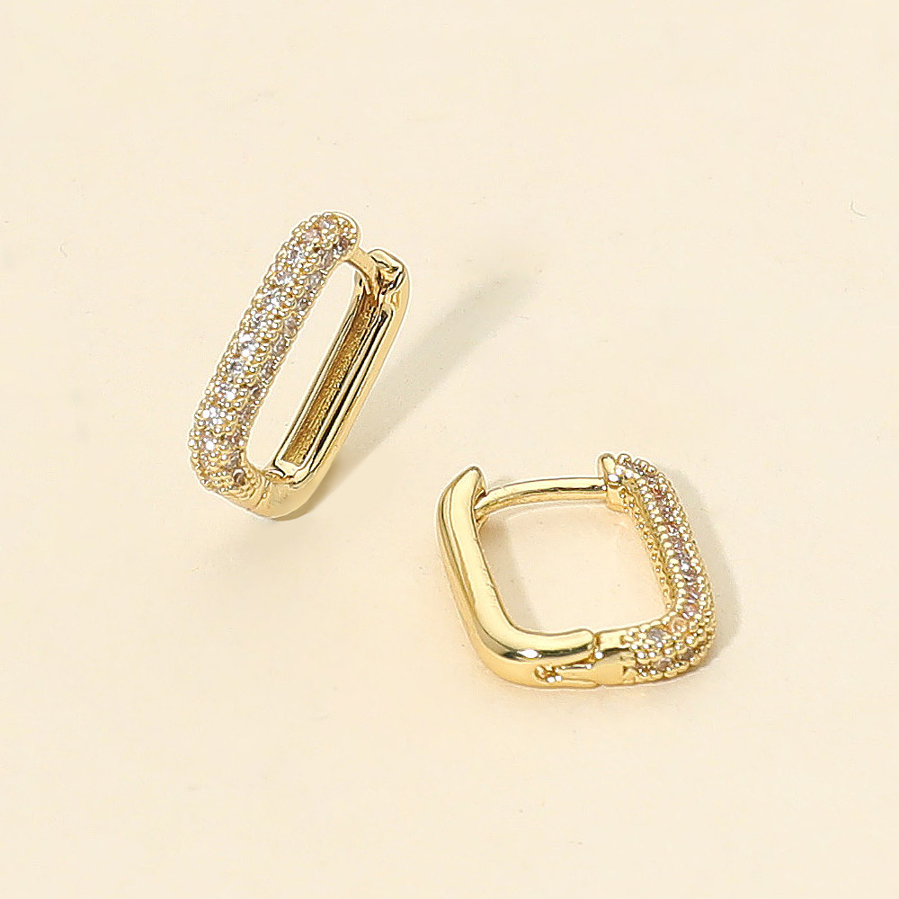 14K Gold Dipped CZ Stone Paved Mini Square Huggie Hoop Earrings 14K Gold Dipped CZ Stone Paved Mini Square Huggie Hoop Earrings