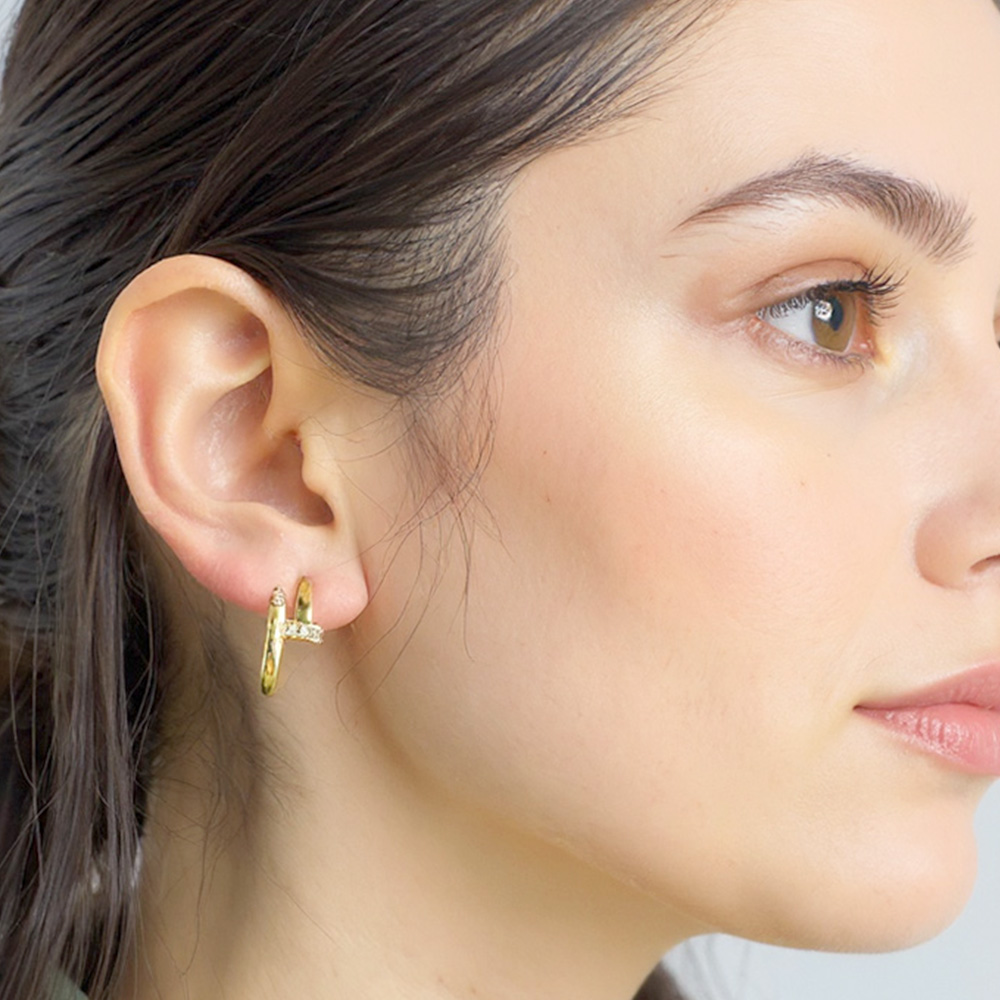• Add a chic twist to your look with these curved hoop earrings featuring a sleek, fluid design accented by sparkling CZ stones. Their modern silhouette blends elegance and edge, making them a versatile piece for both casual wear and elevated occasions.