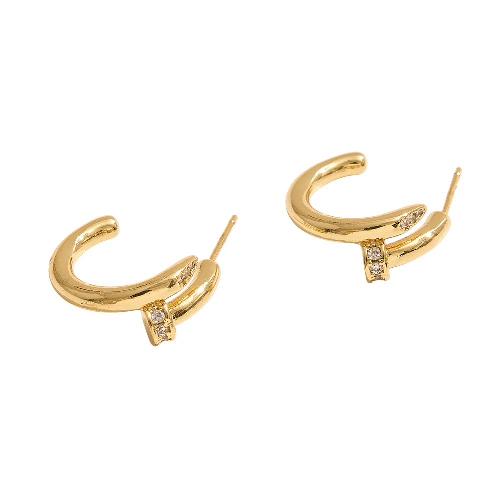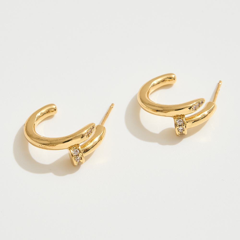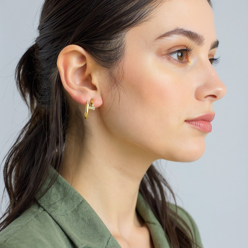 14K Gold Dipped CZ Stone Paved Nail Mini Hoop Earrings