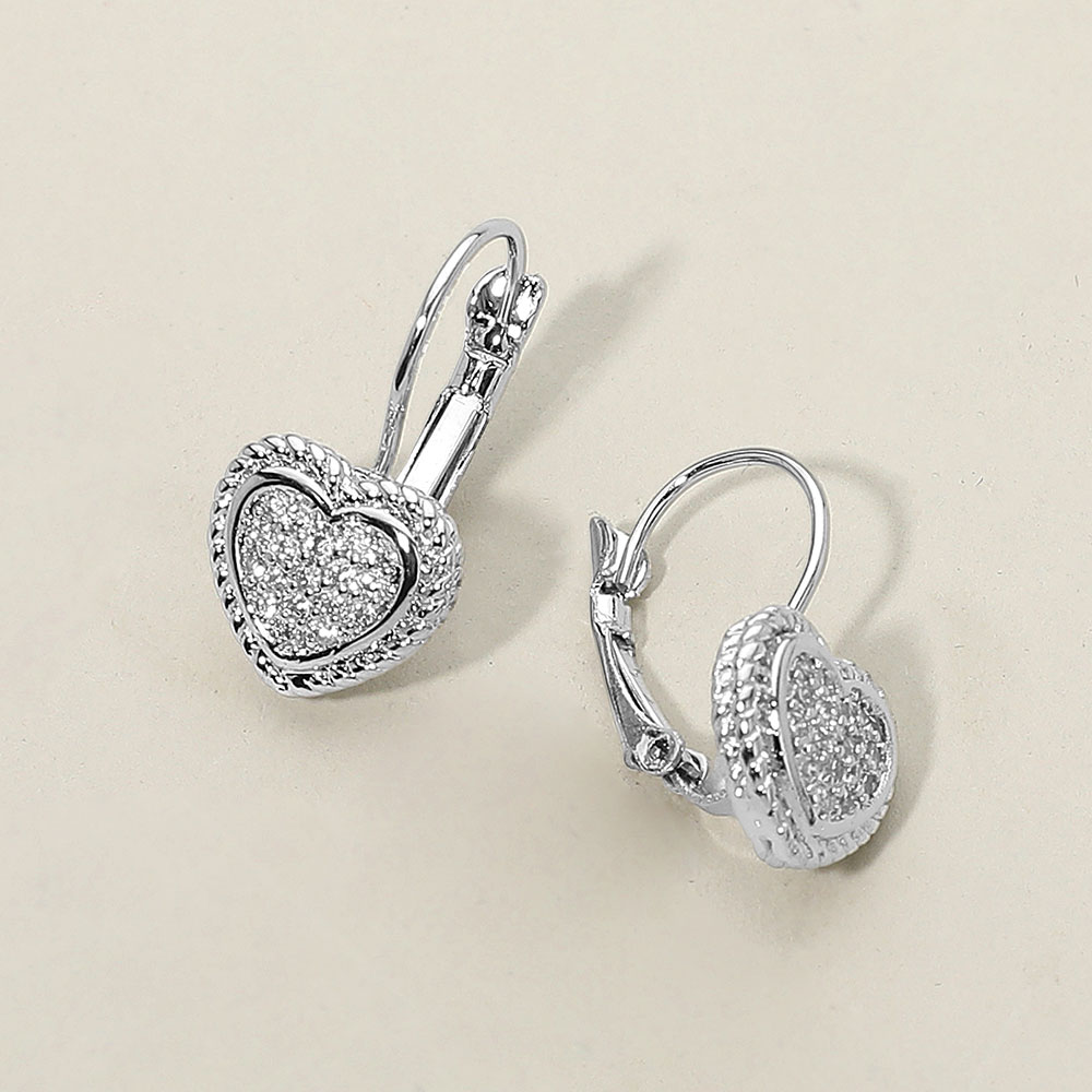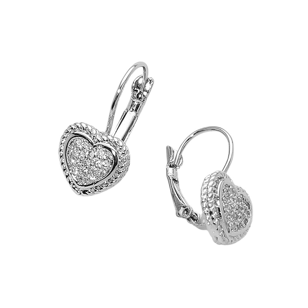 • Elegant heart-shaped leverback earrings designed with a pavĂ©-style surface for added dimension and shine. A romantic yet refined accessory that offers secure wear and effortless movement, perfect for daily styling, special occasions, gifting assortments, and curated boutique jewelry collections.