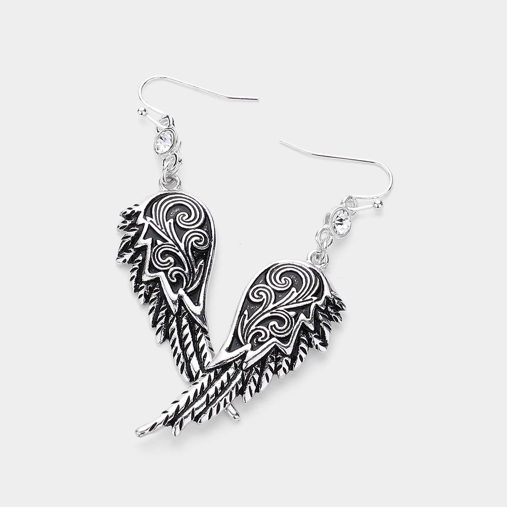 Crystal Accented Metal Angel Wing Drop Earrings
