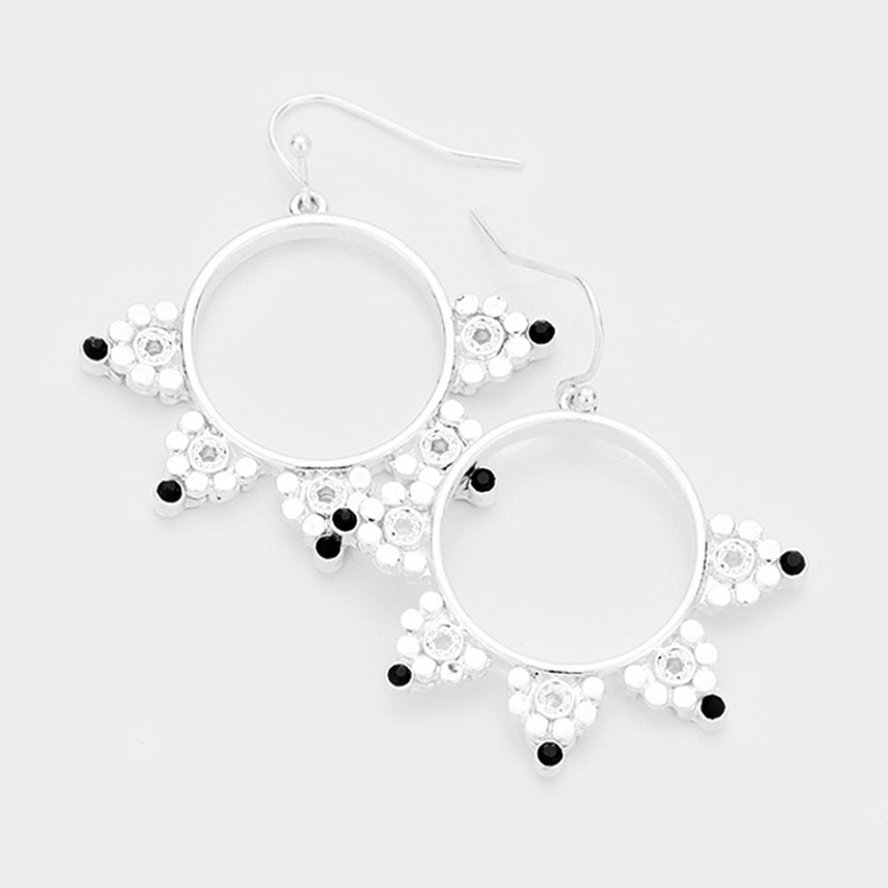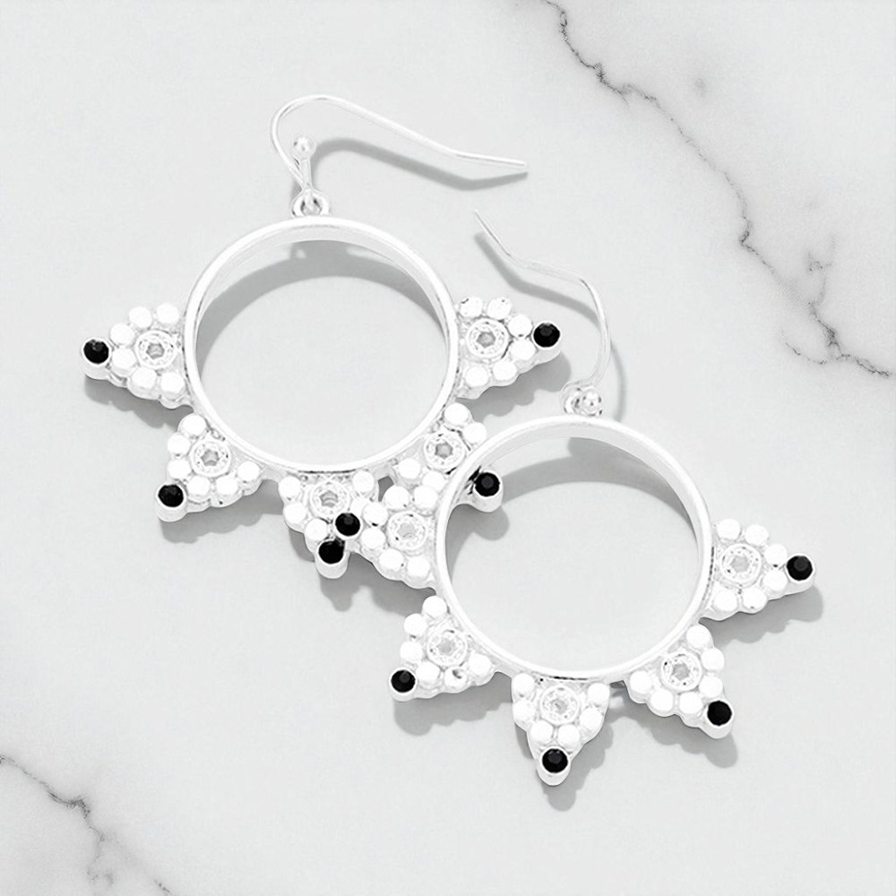 Crystal Embellished Ethnic Patterned Metal Earrings