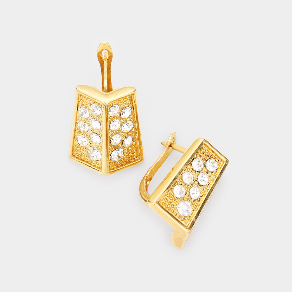 Rhinestone Embellished Angled Metal Earrings