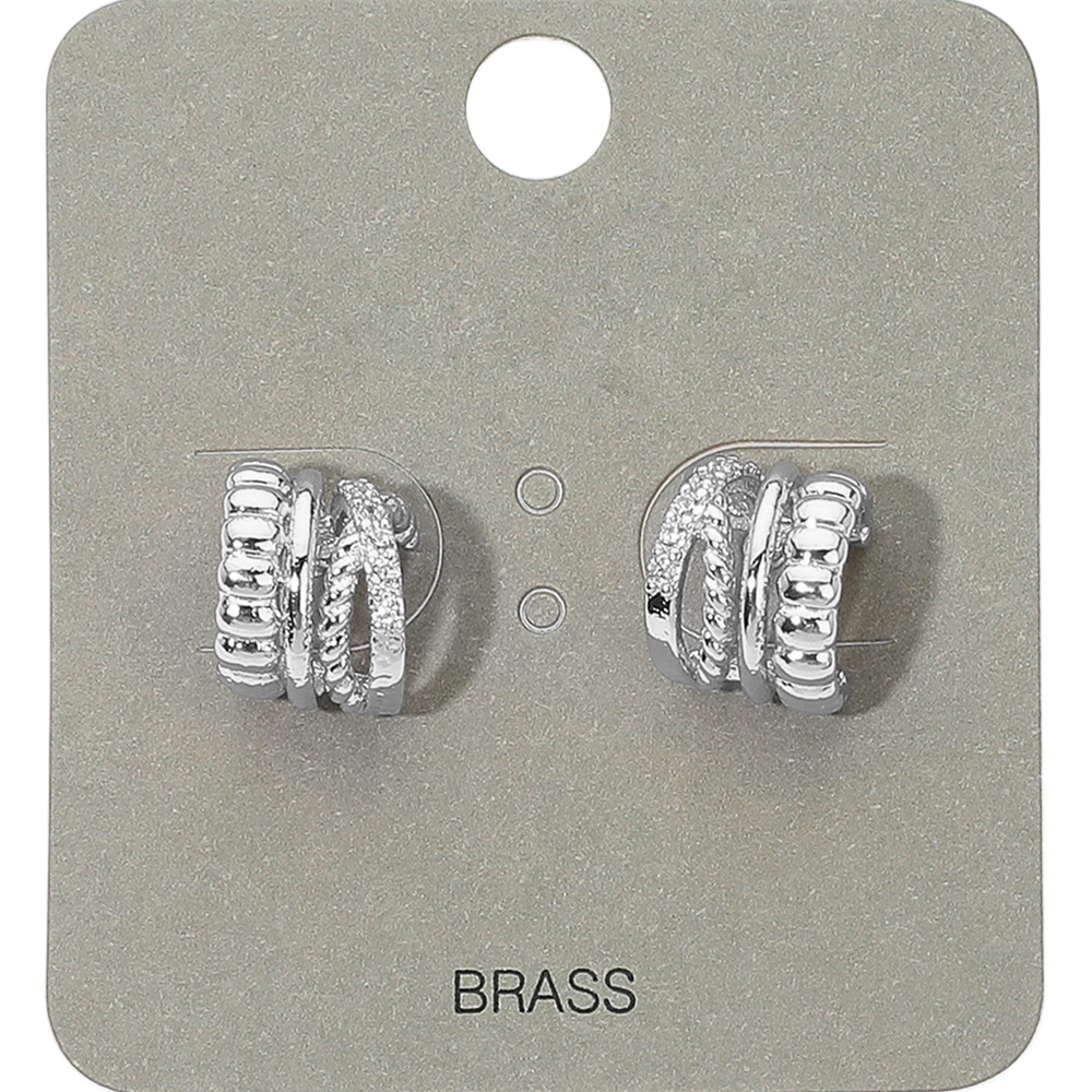 Details • Size : 0.3" X 0.4" • Post Back • Stylish hoop-inspired stud earrings featuring layered textures and sparkling crystal details. Perfect for adding a modern edge to your everyday outfits, while remaining lightweight and versatile for all-day wear. • Brass • Lead and Nickel Compliant