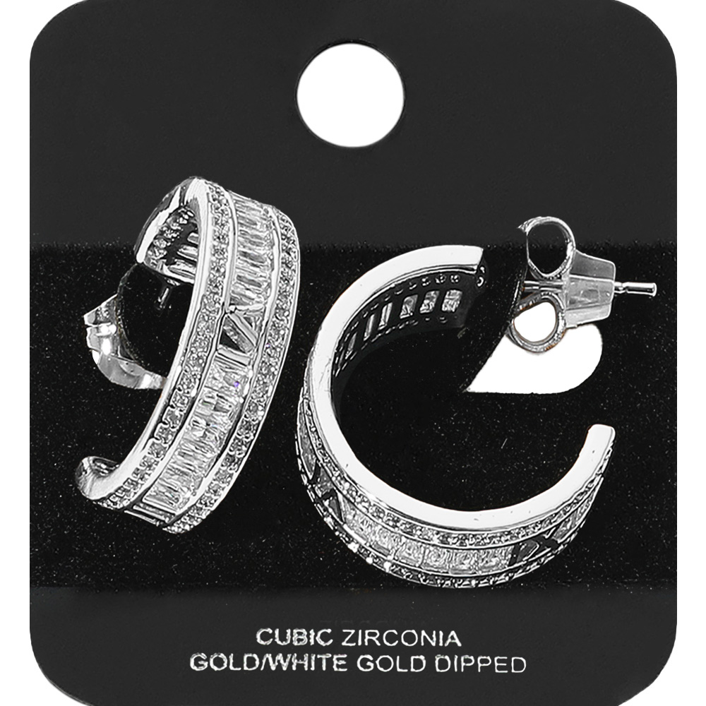 Details • Size : 0.9" X 0.9" X 0.2" • Post Back • Make a statement with cubic zirconia hoop earrings featuring a layered sparkle design. With elegant details and lightweight comfort, these hoops are perfect for elevating both everyday wear and evening looks, adding timeless brilliance to your jewelry style. • Lead and Nickel Compliant • Gold Dipped • CZ Cubic Zirconia