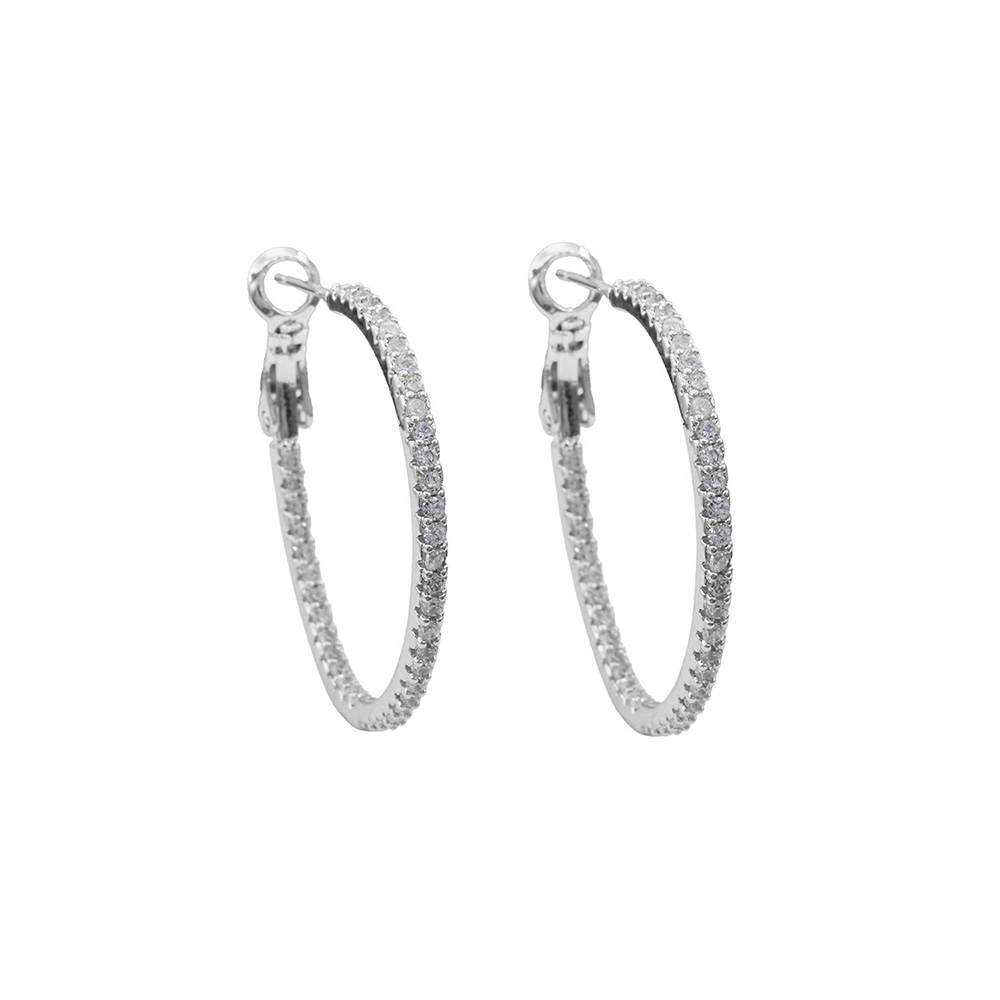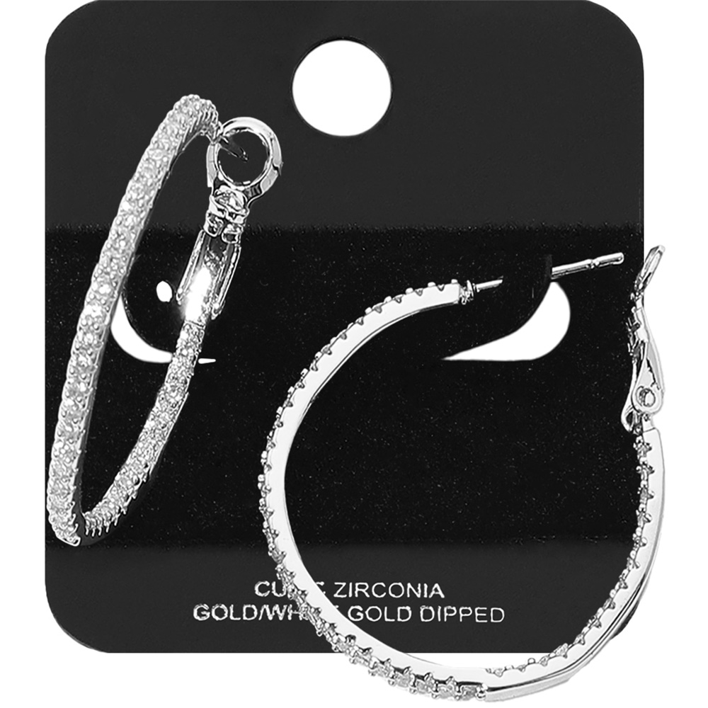 White Gold Dipped CZ Stone Paved Hoop Earrings White Gold Dipped CZ Stone Paved Hoop Earrings