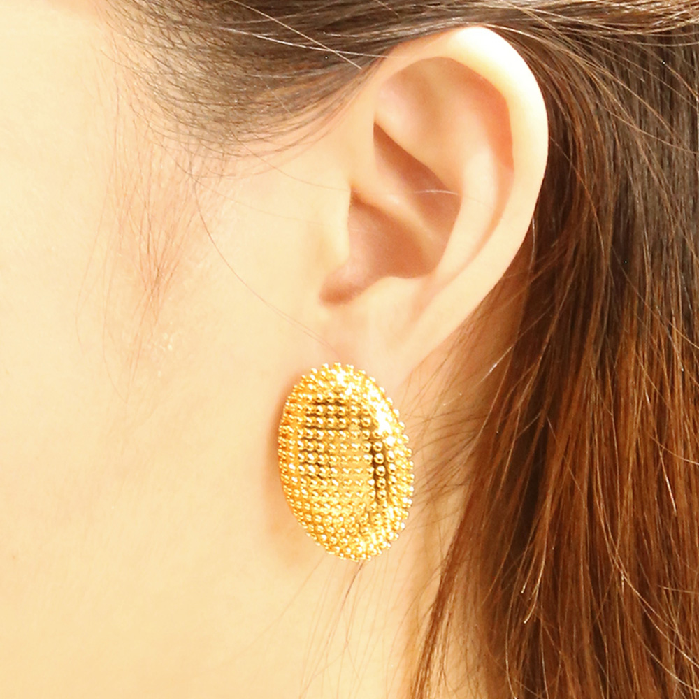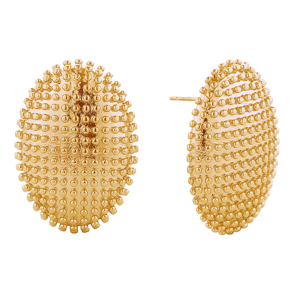14K Gold Dipped Beaded Oval Earrings