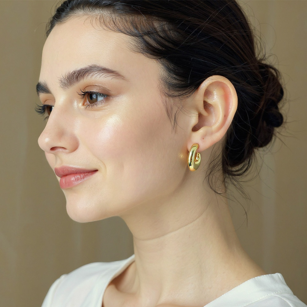 • These sculptural croissant hoop earrings feature a bold, curved silhouette with a smooth finish that creates a modern twist on classic hoops. Lightweight yet statement-worthy, they bring a chic edge to both daytime and evening looks, making them a versatile staple.