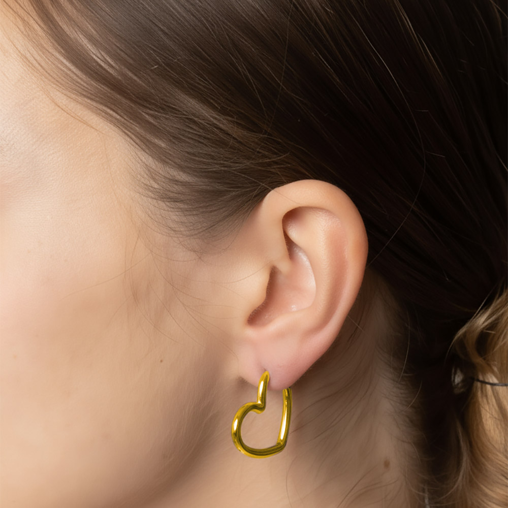 • Add charm to your look with these open heart hoop earrings, designed in a sleek and modern silhouette. Perfect for everyday wear or special occasions, these earrings make a thoughtful gift that blends elegance with a playful touch of romance.