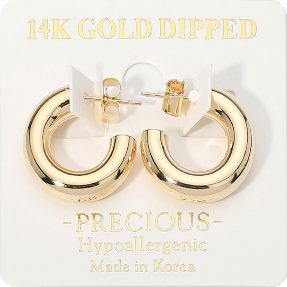 Details • Size : 0.75" X 0.75" • Post Back • Bold hoop stud earrings featuring a chunky rounded design for a modern statement look. A stylish accessory that adds a polished touch to both casual and dressy outfits, perfect for elevating everyday style. • Hypoallergenic • Made In Korea • Gold Dipped