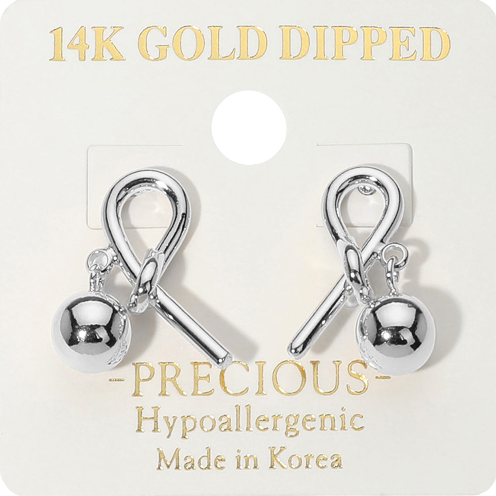 Details • Size : 0.6" X 0.8" • Post Back • These modern stud earrings feature a sleek looped design accented by a smooth drop ball for subtle movement. Lightweight and stylish, they bring a touch of contemporary charm to everyday looks or evening outfits with a clean, artistic finish. • Hypoallergenic • Made In Korea • Gold Dipped