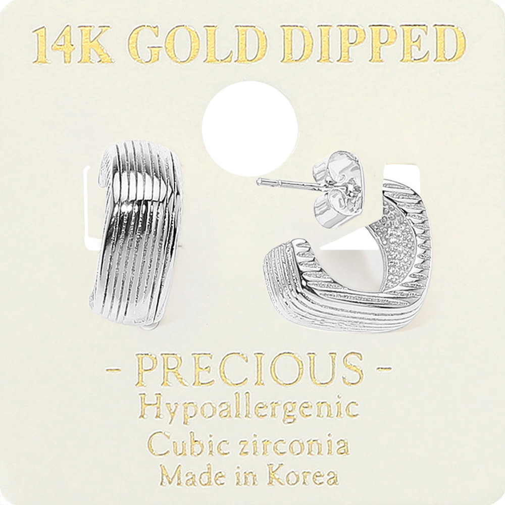 14K Gold Dipped Ribbed Mini Square Hoop Earrings