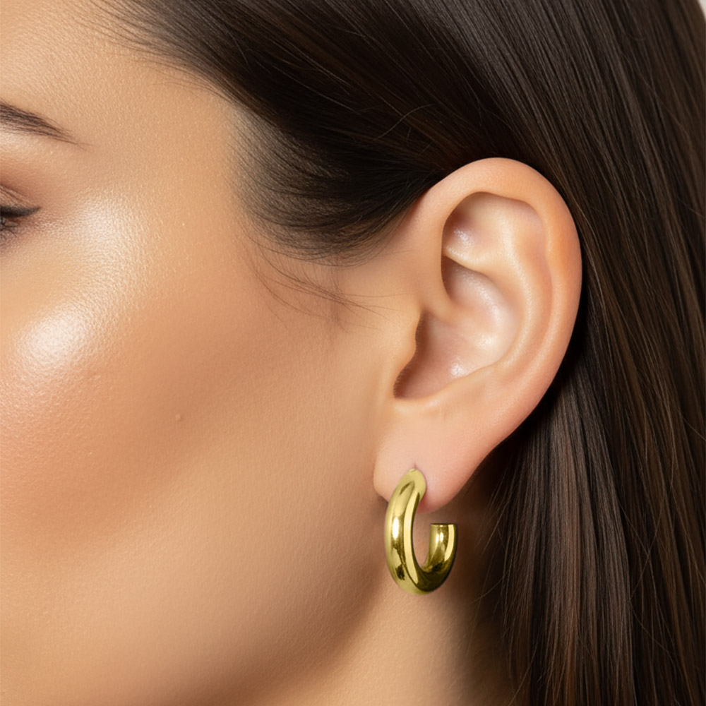 14K Gold Dipped Small Chunky Open Hoop Earrings