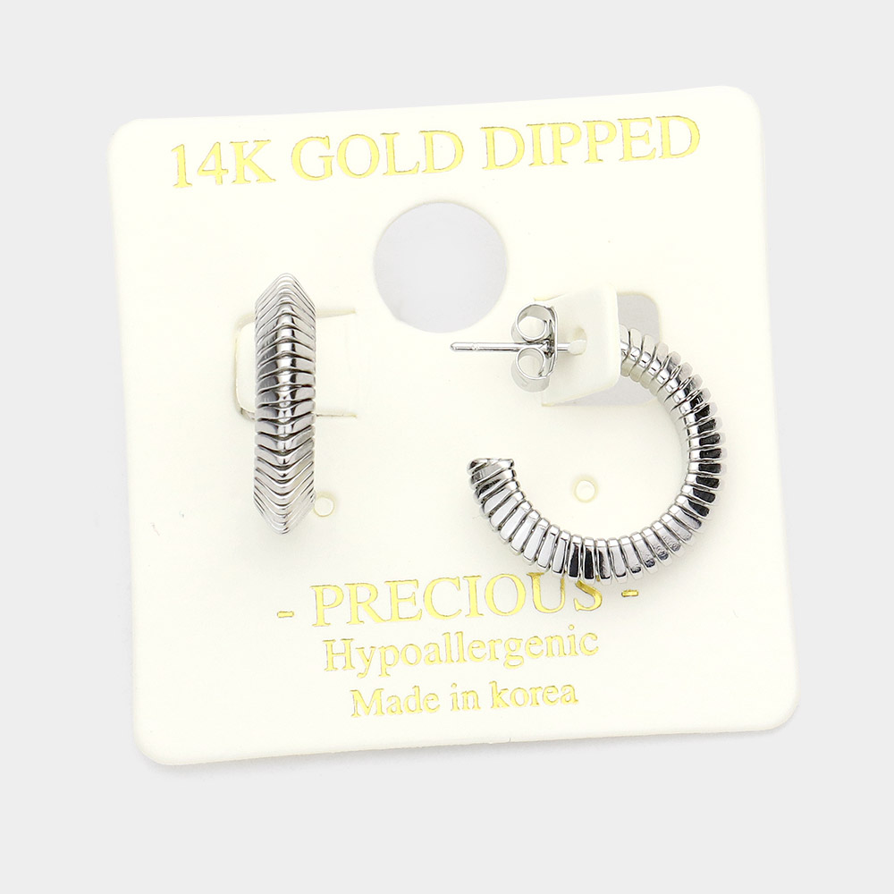 14K White Gold Dipped Textured Metal Half Hoop Earrings