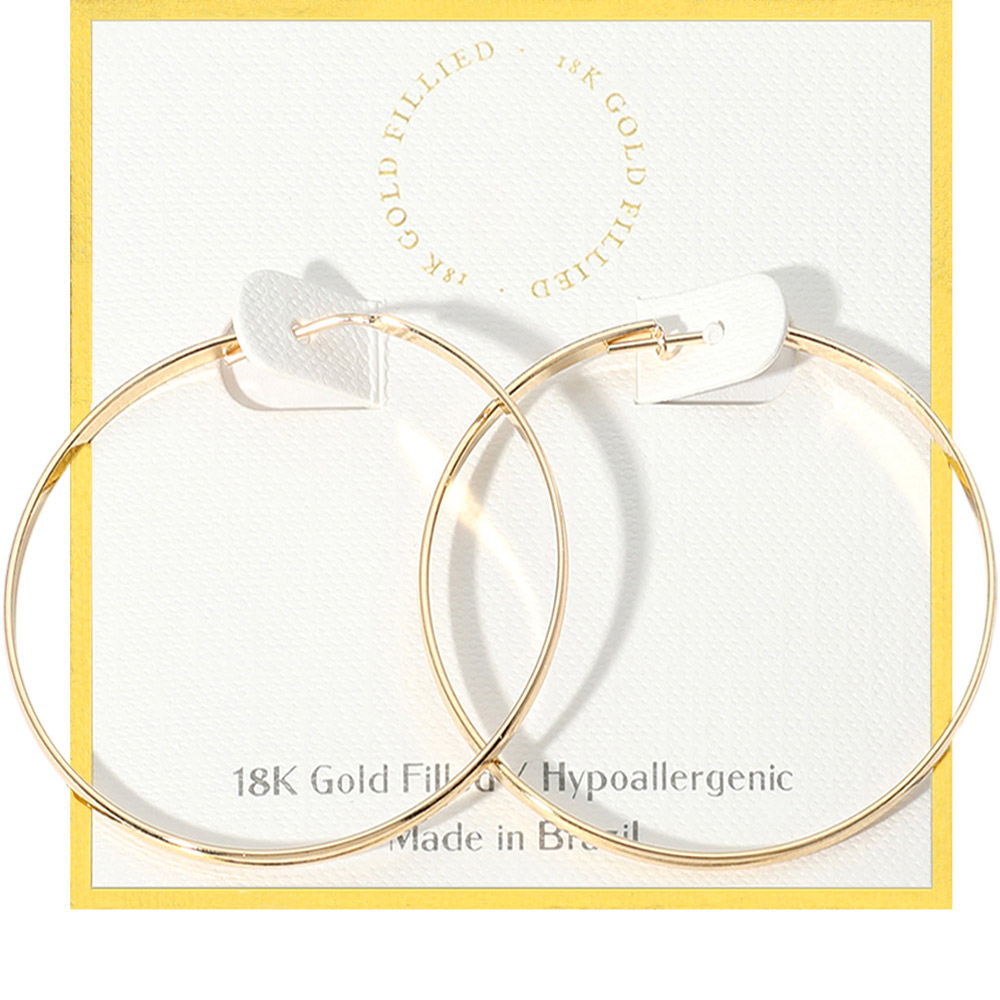 Details • Size : 1.8" X 1.8" • Kidney Wire Back • Water resistant and tarnish free • Elevate your everyday look with these 18K gold filled large hoop earrings, hypoallergenic and crafted in Brazil. Their lightweight and timeless design makes them a versatile accessory, perfect for pairing with casual outfits or dressing up for elegant occasions. • Lead and Nickel Compliant • Hypoallergenic • Gold Filled • Made In Brazil