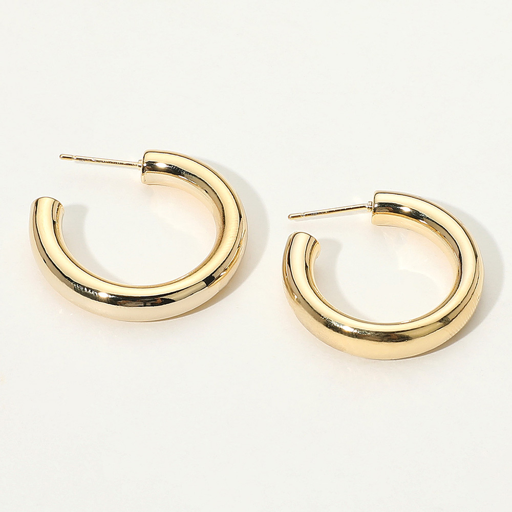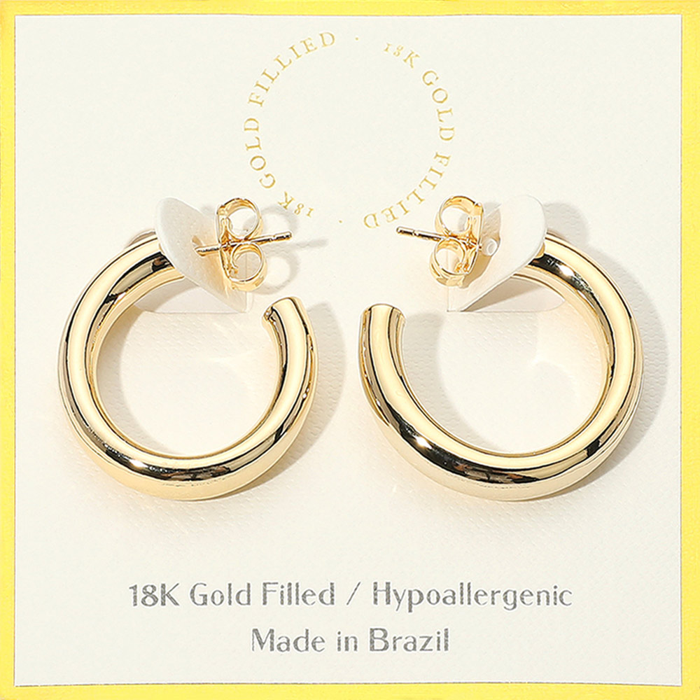 Details • Size : 1.1" X 1.1" X 0.2" • Post Back • Elevate your style with these 18K gold filled hoop earrings. Featuring a sleek, polished finish and hypoallergenic design, they offer both elegance and comfort. Ideal for everyday wear or special occasions with timeless appeal. • Gold Filled • Hypoallergenic • Lead and Nickel Compliant • Made In Brazil
