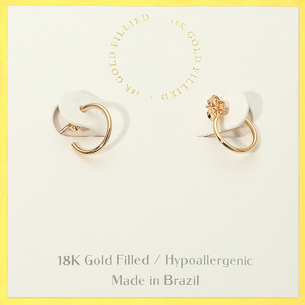 Details • Size : 0.5" X 0.5" • Post Back • Delicate small hoop earrings crafted with a sleek and timeless design. Lightweight and versatile, these earrings are perfect for daily wear or layering with other jewelry, adding a subtle touch of elegance to both casual and dressy outfits. • Gold Filled • Hypoallergenic • Lead and Nickel Compliant • Made In Brazil