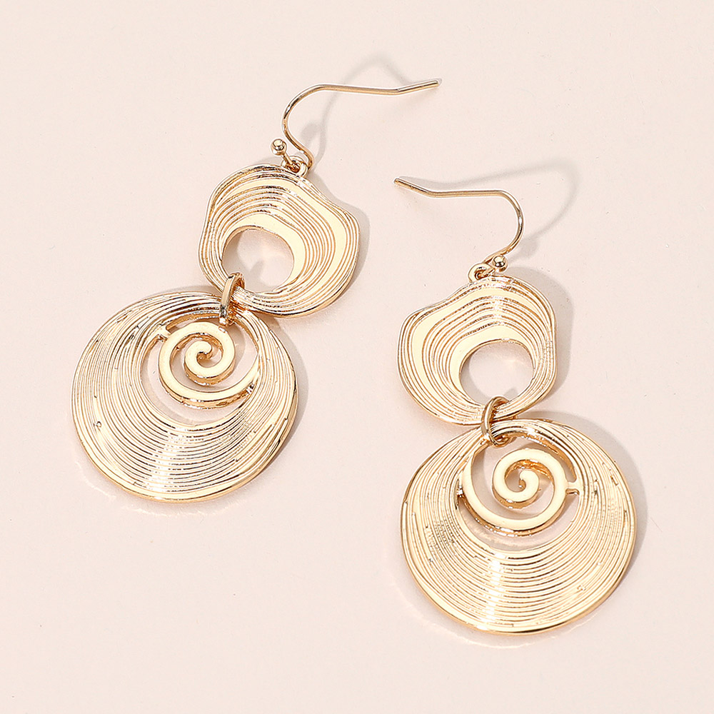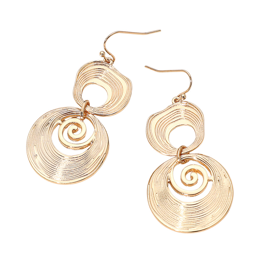 • Add a bold artistic flair with these abstract spiral drop earrings featuring textured concentric circles and a unique swirling design. Lightweight and statement-making, they effortlessly elevate both casual and dressy outfits with their creative, sculptural charm.