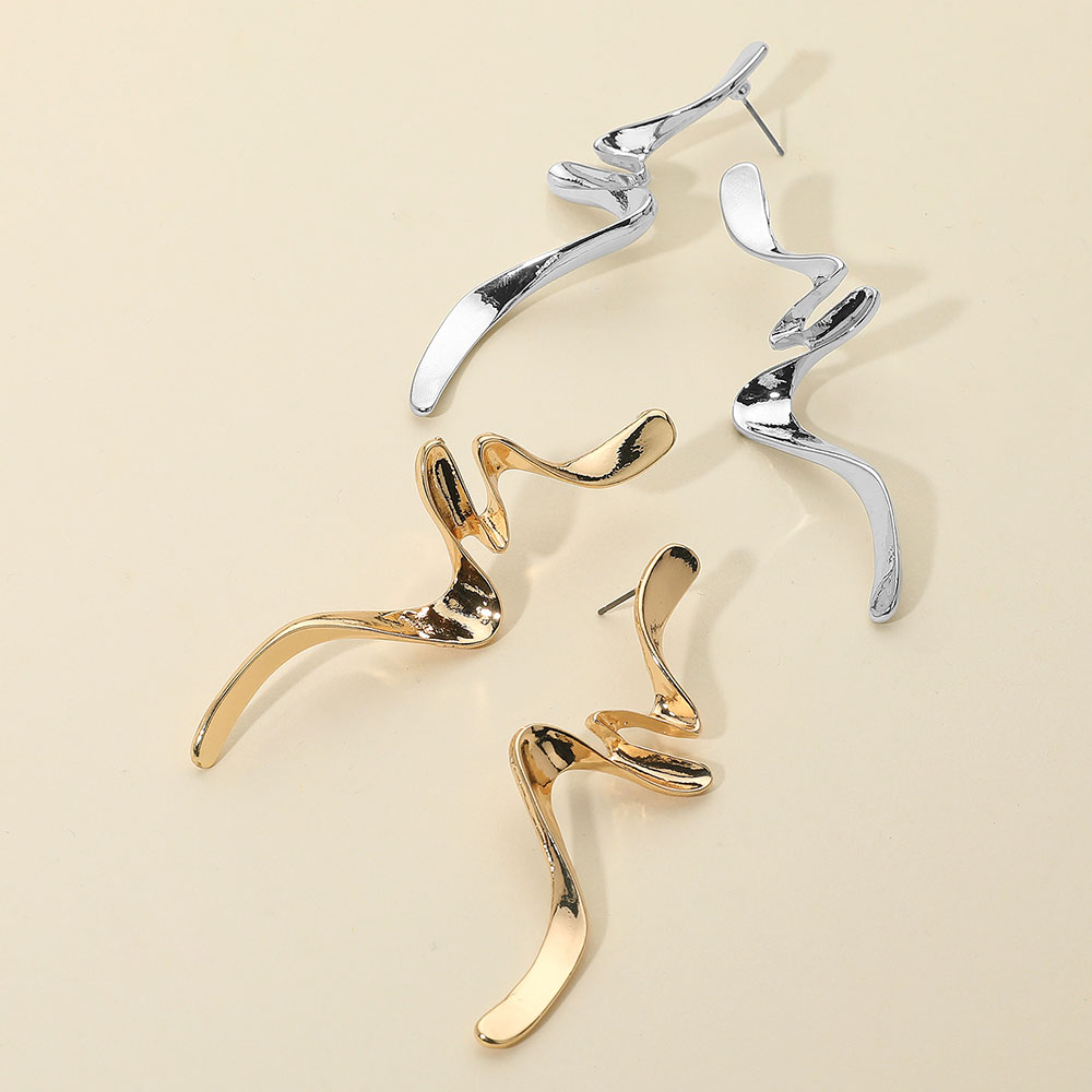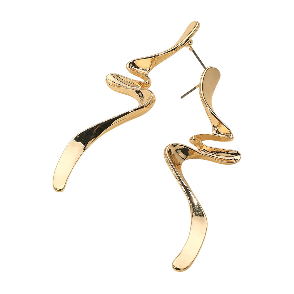 Details • Size : 1" X 3" • Post Back • Sculptural drop earrings designed with flowing wave-like curves for a bold modern look. Lightweight yet dramatic, these statement earrings add an artistic edge to day-to-night styling. • Lead and Nickel Compliant