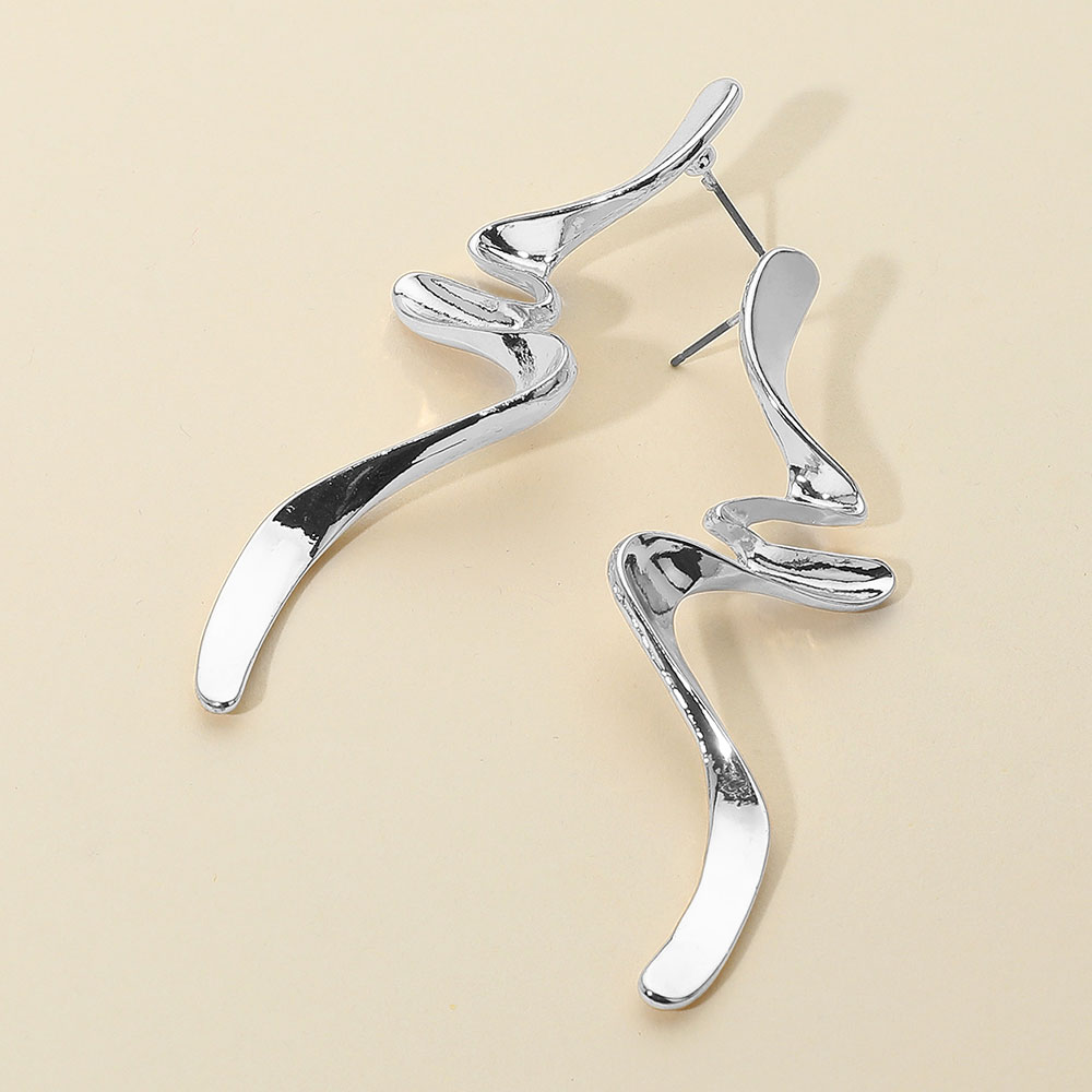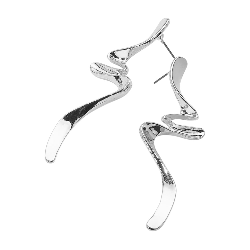 Details • Size : 1" X 3" • Post Back • Sculptural drop earrings designed with flowing wave-like curves for a bold modern look. Lightweight yet dramatic, these statement earrings add an artistic edge to day-to-night styling. • Lead and Nickel Compliant